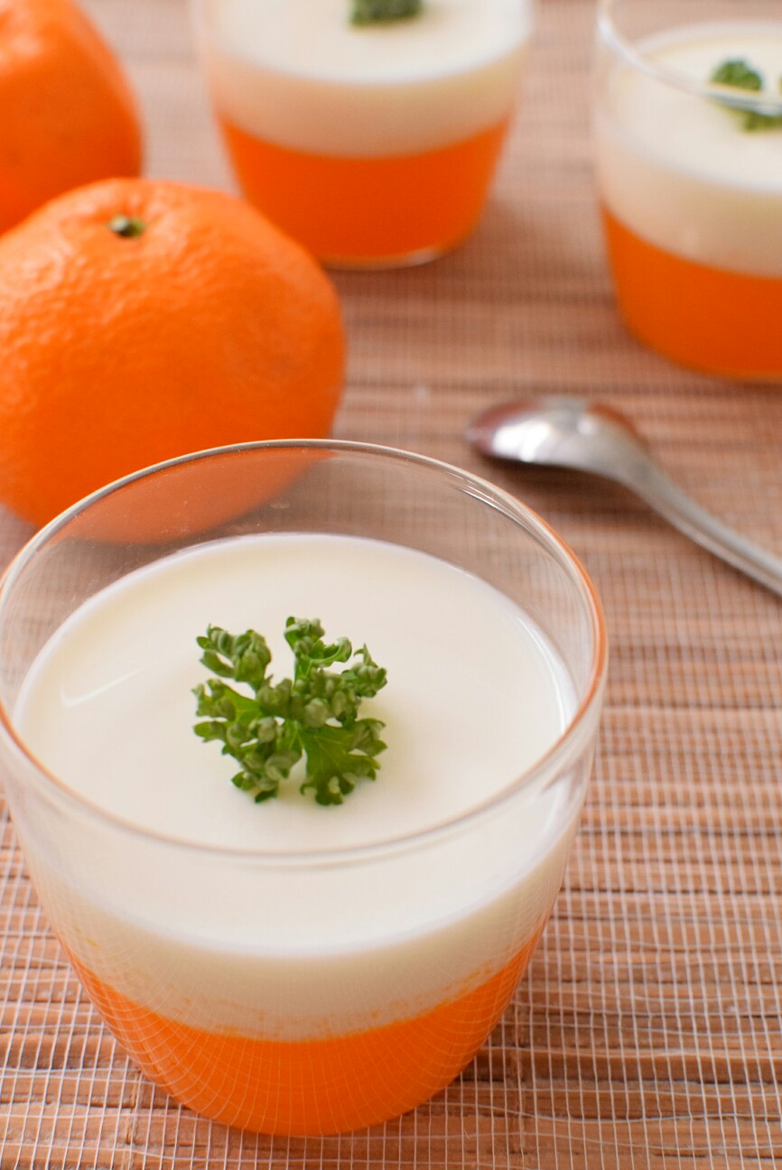 みかんゼリーとミルクプリンの二層スイーツのレシピ - レシピ研究所。