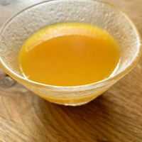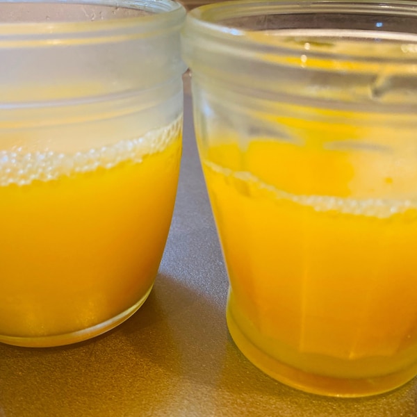みかんを搾って作った、贅沢な果汁100%みかんジュースを頂いたので、、、ゼリーを作りました😍 濃厚でなんとも言えない甘酸っぱさがたまらないです✨作り方「みかん汁」300ccに「粉寒天」3gを入れて沸騰させ冷やし固めて完成👍簡単です!!!天然素材で安心。