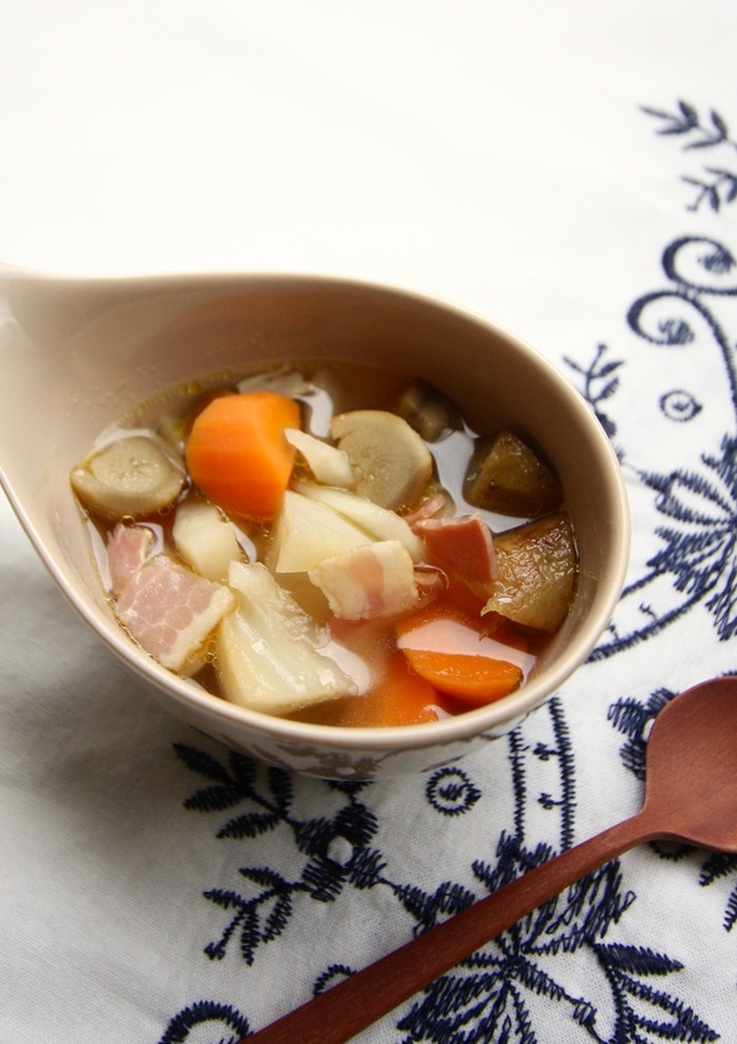 レシピ 食べ応え満点!「根菜と大豆のコンソメスープ」東京ガス ウチコト。
