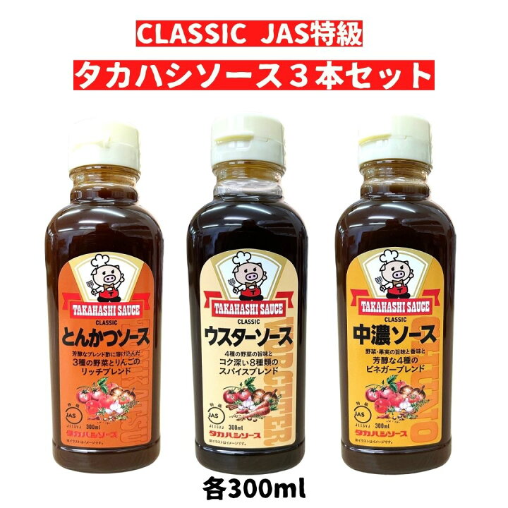 楽天市場 高橋ソース JAS特級とんかつソース・ウスターソース・中濃ソース 各300ml×1本ずつセット タカハシソース : ごちそうさまストア。