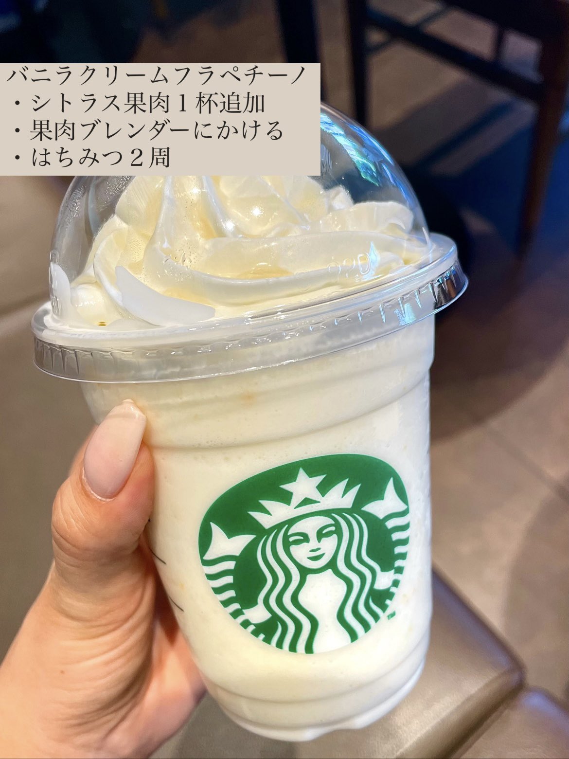 スタバカスタマイズ♪バニラクリームフラペチーノにシトラス果肉追加 - 旅するエスプレッソ。