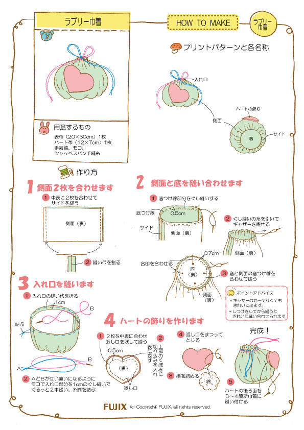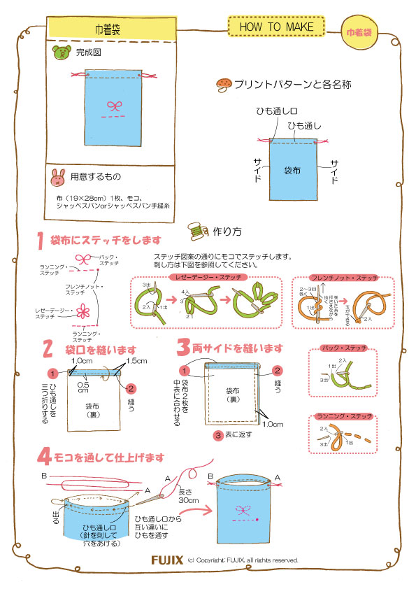 はじめてのミシン 便利な巾着袋手作りレシピクロバー株式会社。