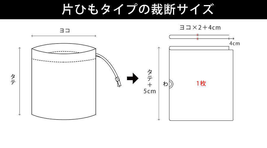 基本の巾着袋 両ひも・片ひも の製図・型紙と作り方nunocoto fabric。