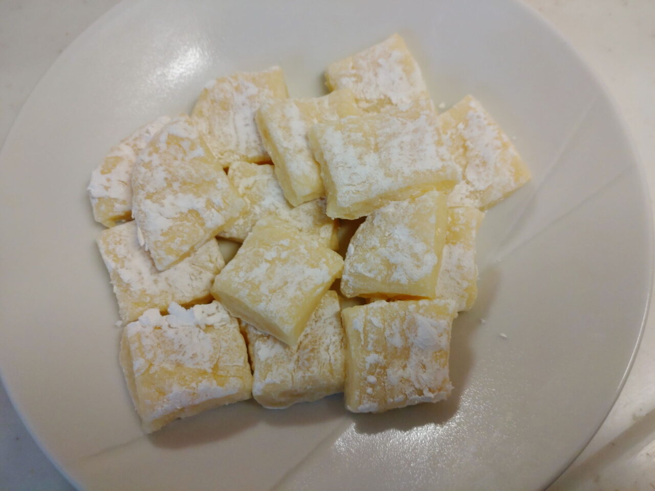 ジョーさん。 料理研究家على X: "友人が「餅を飲むおじさん」と化した 天使のようにソフトな「クリチーもち」 切り餅2個、クリームチーズ40g、砂糖大さじ2、牛乳小さじ2をボウルに入れ、600Wで3分加熱し、熱いうちによく混ぜ合わせる。片栗粉を広げたバットの上で。