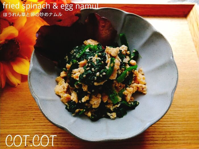 ★冷凍のほうれん草でも簡単にできちゃう‼お弁当にも彩で。ほうれん草と卵の炒めナムル★。