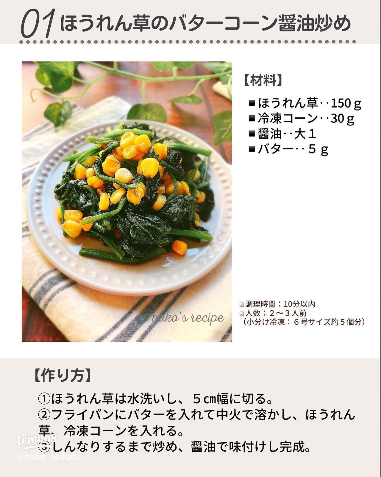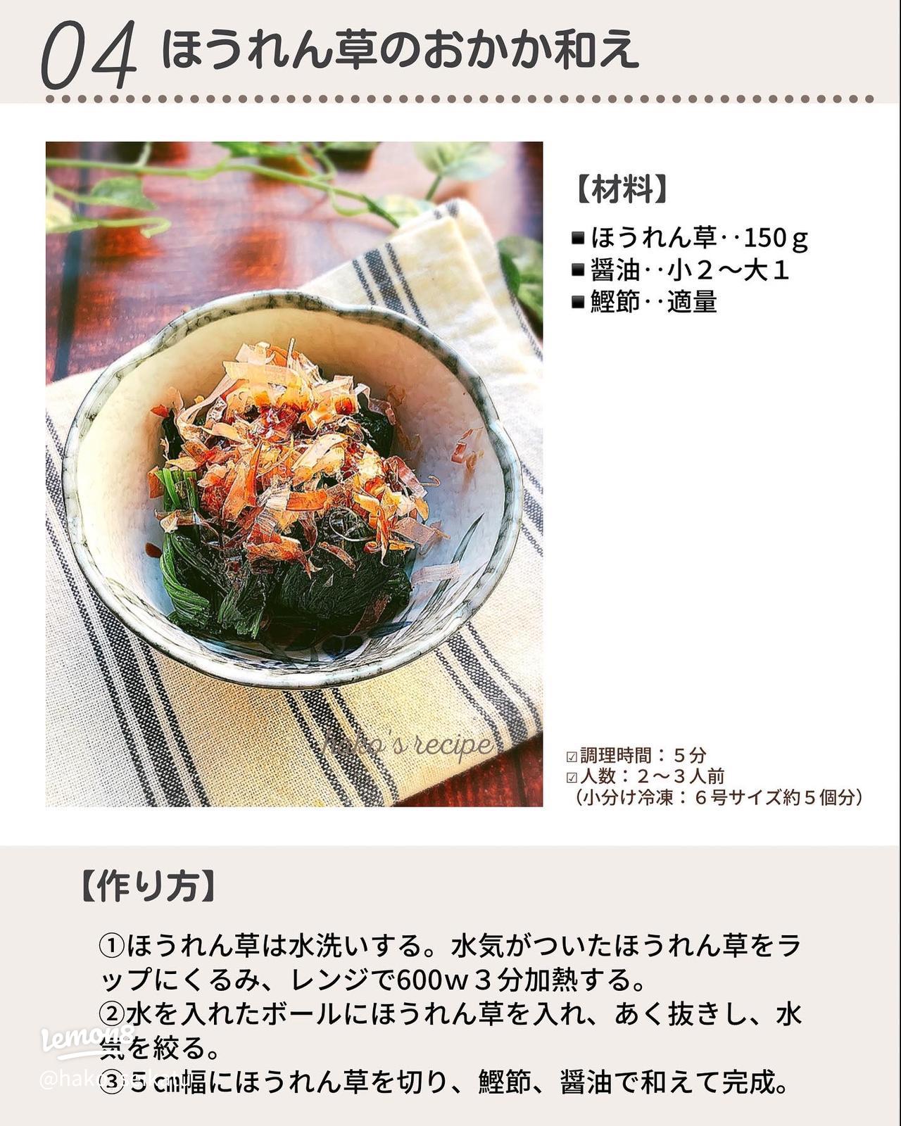 お弁当に!あと1品☆10分以内に出来るほうれん草レシピはこの冷凍おかず作り置きが投稿したフォトブックLemon8。