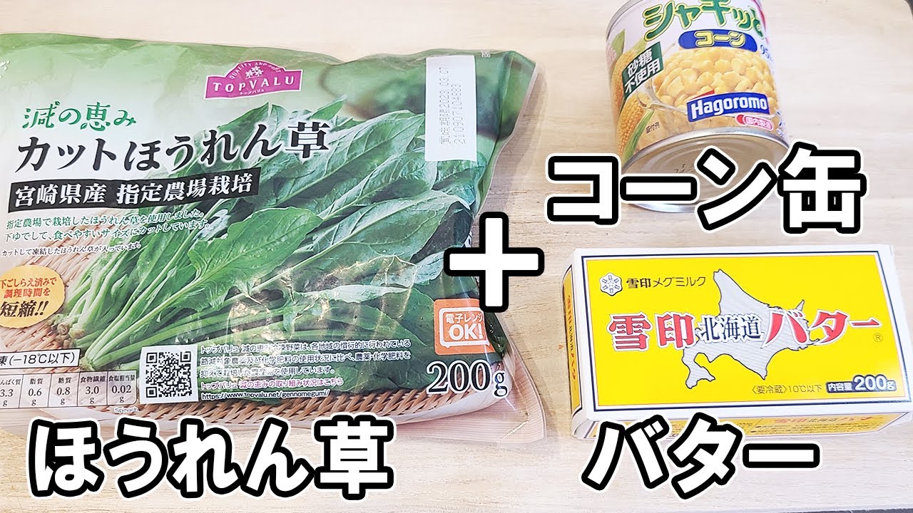 お弁当おかず 冷凍ほうれん草とコーンのバター炒めの作り方!冷蔵庫にあるもので簡単おいしい節約料理 旦那弁当 毎日弁当 冷凍食品。