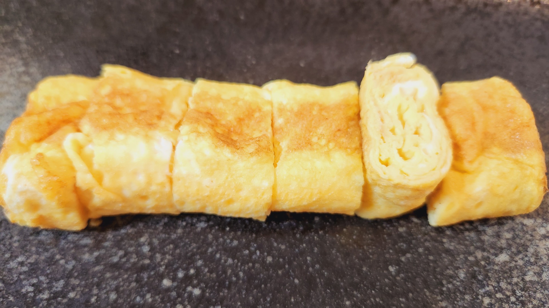 卵2個と白だし大1で作る!小さめ普通の出汁巻き卵。