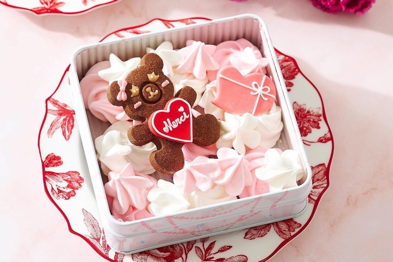 サマンサタバサスイーツ“くま型”クッキーが主役のバレンタイン限定缶、ピンク&白のメレンゲ入り - ファッションプレス。