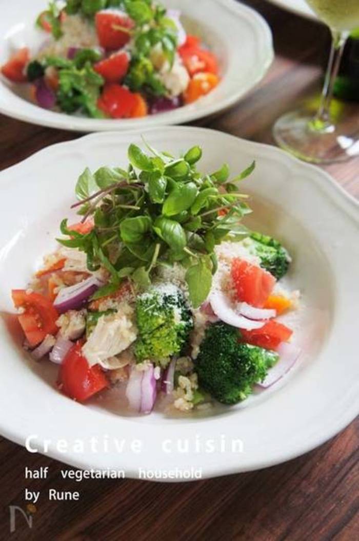 整えたい時の玄米サラダrecipe流行ってる玄米サラダ‼︎ 基本の玄米サラダをアレンジしてさらに美味しくヘルシーに♡ 玄米サラダなんだけどメインが具になってるよ基本レシピ 玄米 8分づき 2合分+浄水2合分+オリーブオイル大さじ1+塩 ↑煮込みモードで炊く。
