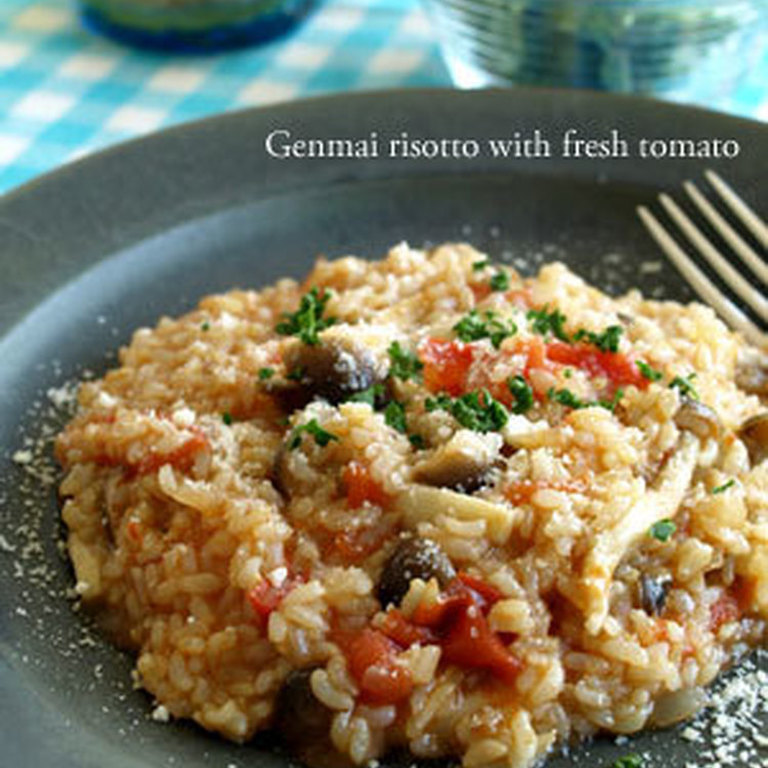 玄米を生のまま入れるだけの簡単リゾット きのことトマトの玄米リゾット『朝10分でできる スープ弁当』③ダ・ヴィンチWeb。