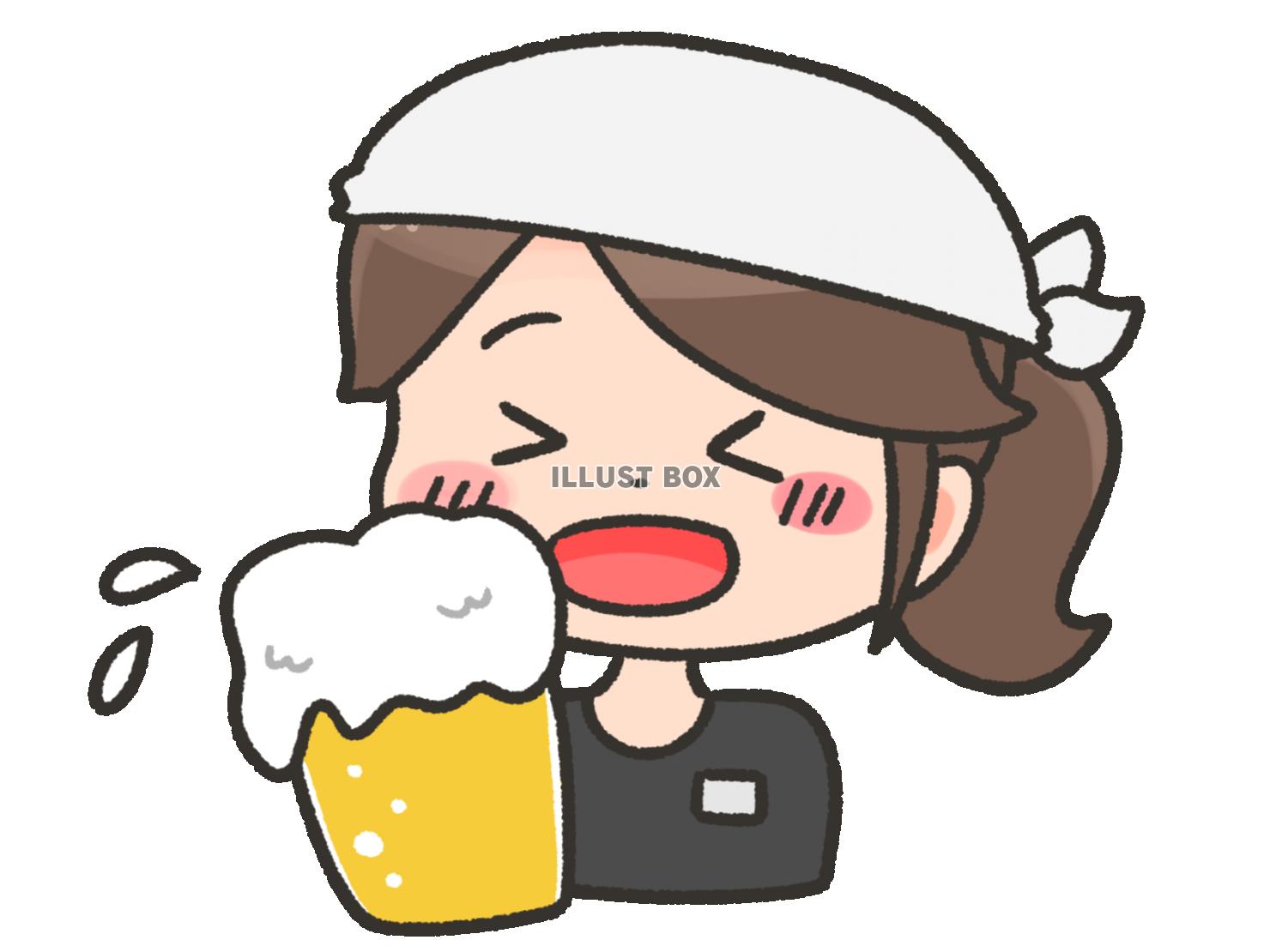 ビールを持つ居酒屋店員の女性:イラスト無料。