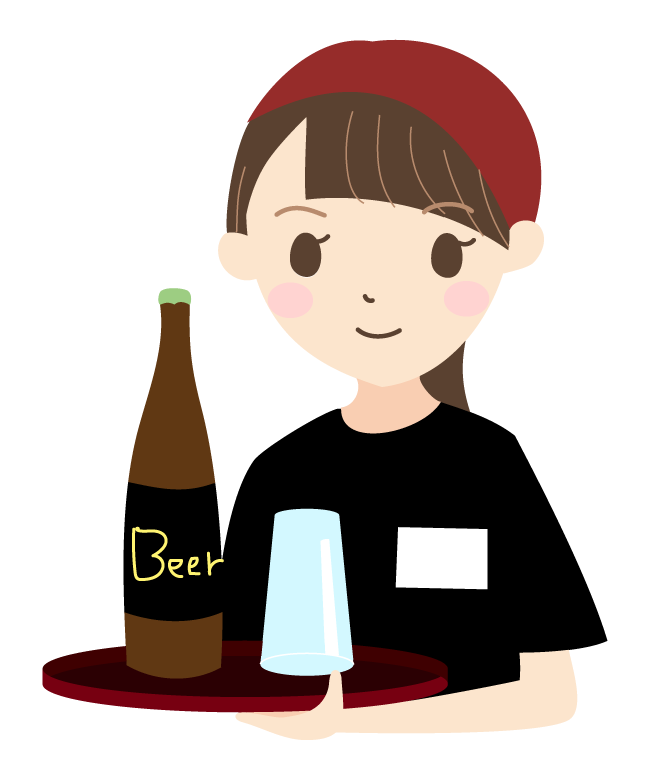 瓶ビールを運ぶ居酒屋の店員さんのイラスト無料のフリー素材 イラストエイト。