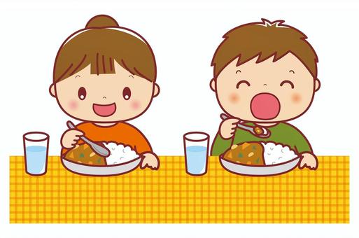 ご飯が美味しくて喜ぶ子どものイラスト無料のフリー素材 イラストエイト。