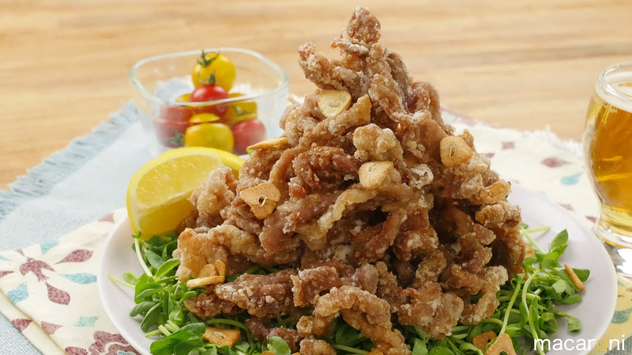 つまみ食い確定!カリカリやみつき 豚こま肉で ガーリック 竜田 揚げ のレシピ 作り方。