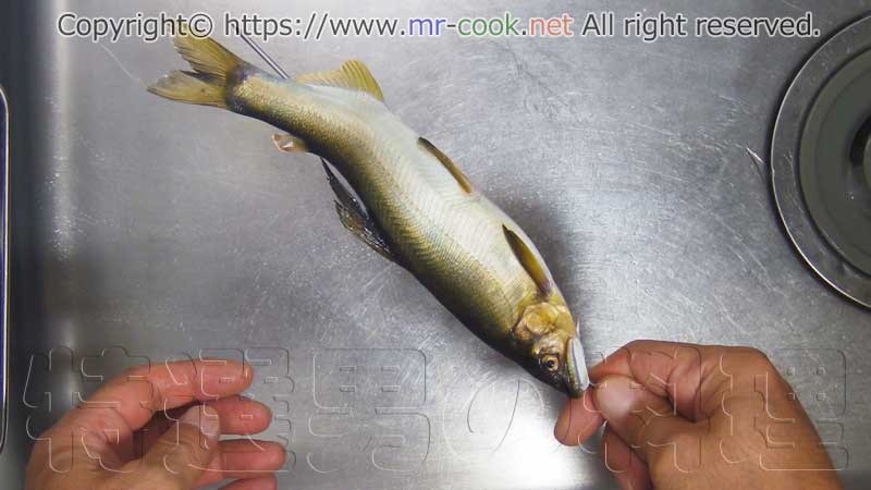 鮎の塩焼きの下処理 糞の出し方 Salt-grilled sweetfish。