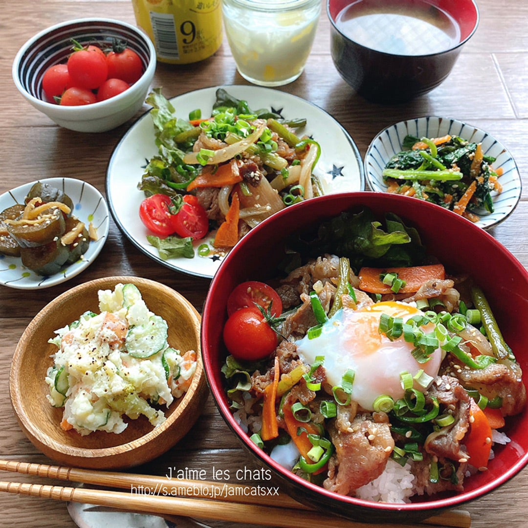 遠足弁当*夕飯献立 プルコギ丼と作り置きで簡単子供ごはんと不満弁当J'aime les chats☀お弁当ごはん。