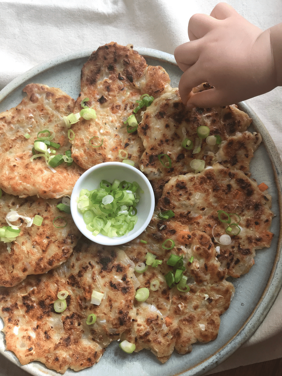 1才と食べるごはん 豆腐としらすの米粉お好み焼きレシピ※卵不使用pon卵乳製品なしおやつ、時々ごはん「ponkitchen」。