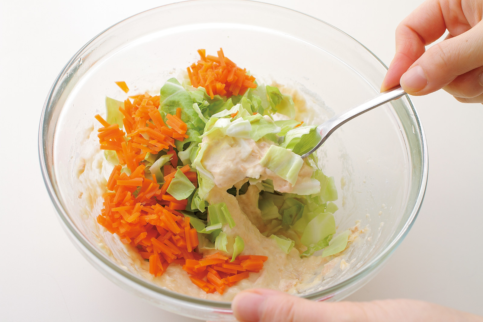 さばと豆腐のお好み焼き 1回分・幼児食おやつレシピ たまひよ。