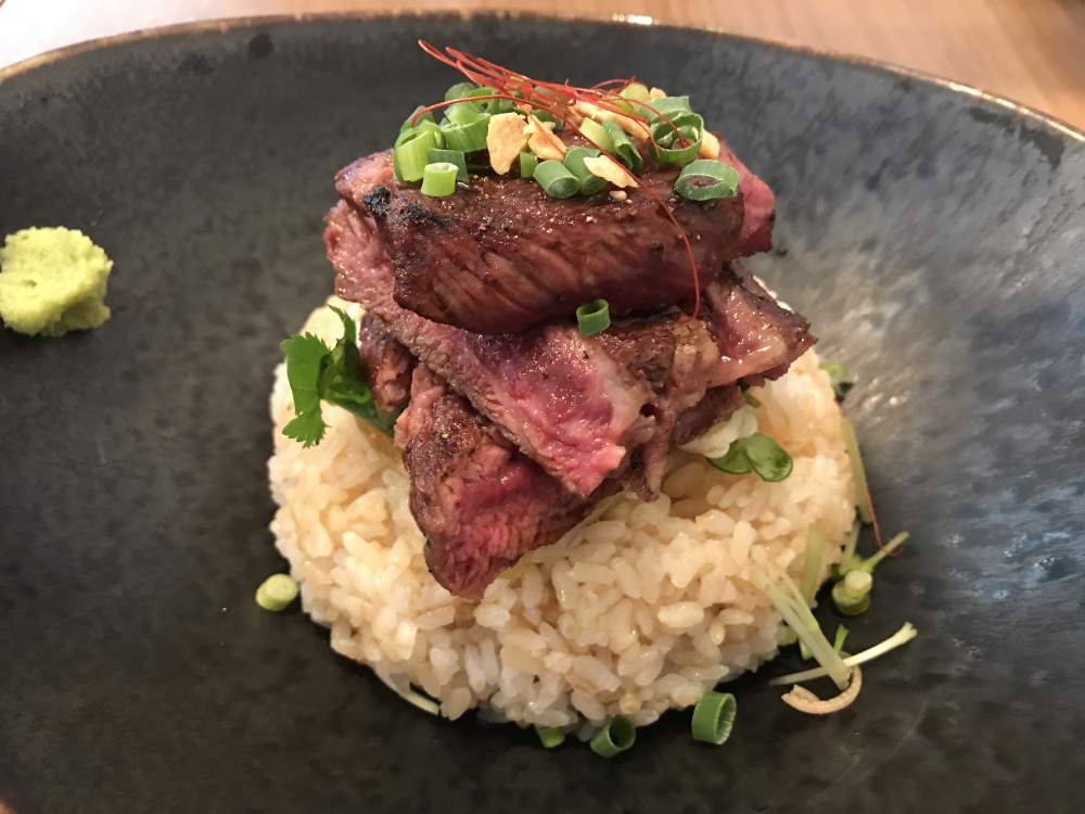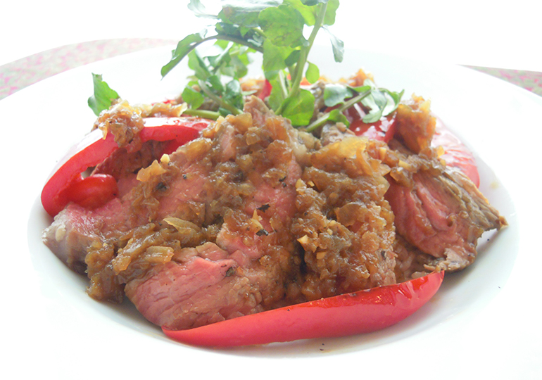 和風シャリアピンソースでステーキ丼。