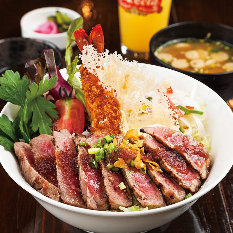 欧風料理 ビトロー2018 アメリカ産ブランド牛のステーキ丼 エビフライ付き公式 南魚沼、本気丼。