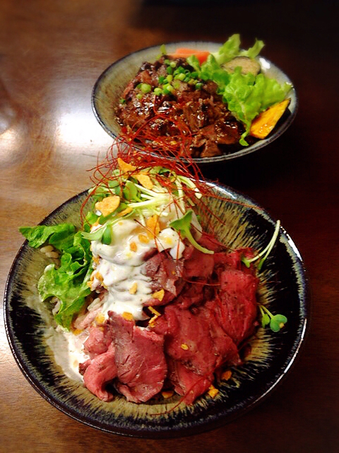 四日市のオシャレカフェでレアステーキ丼。