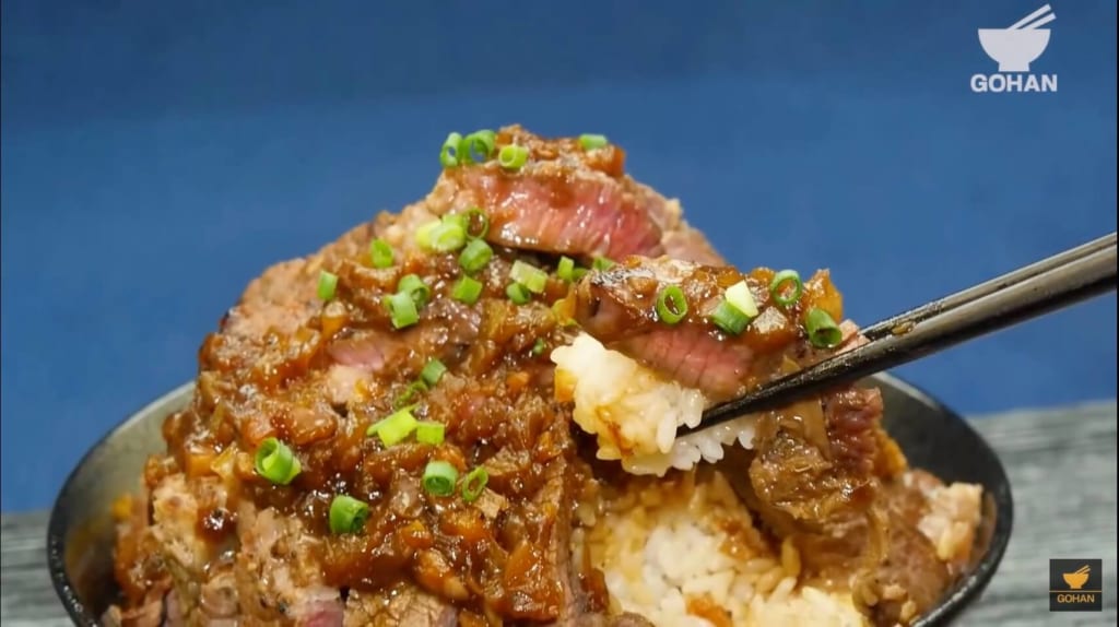 簡単レシピ 「和風シャリアピンステーキ丼」の作り方 – 簡単男飯レシピ・作り方 – GOHAN。