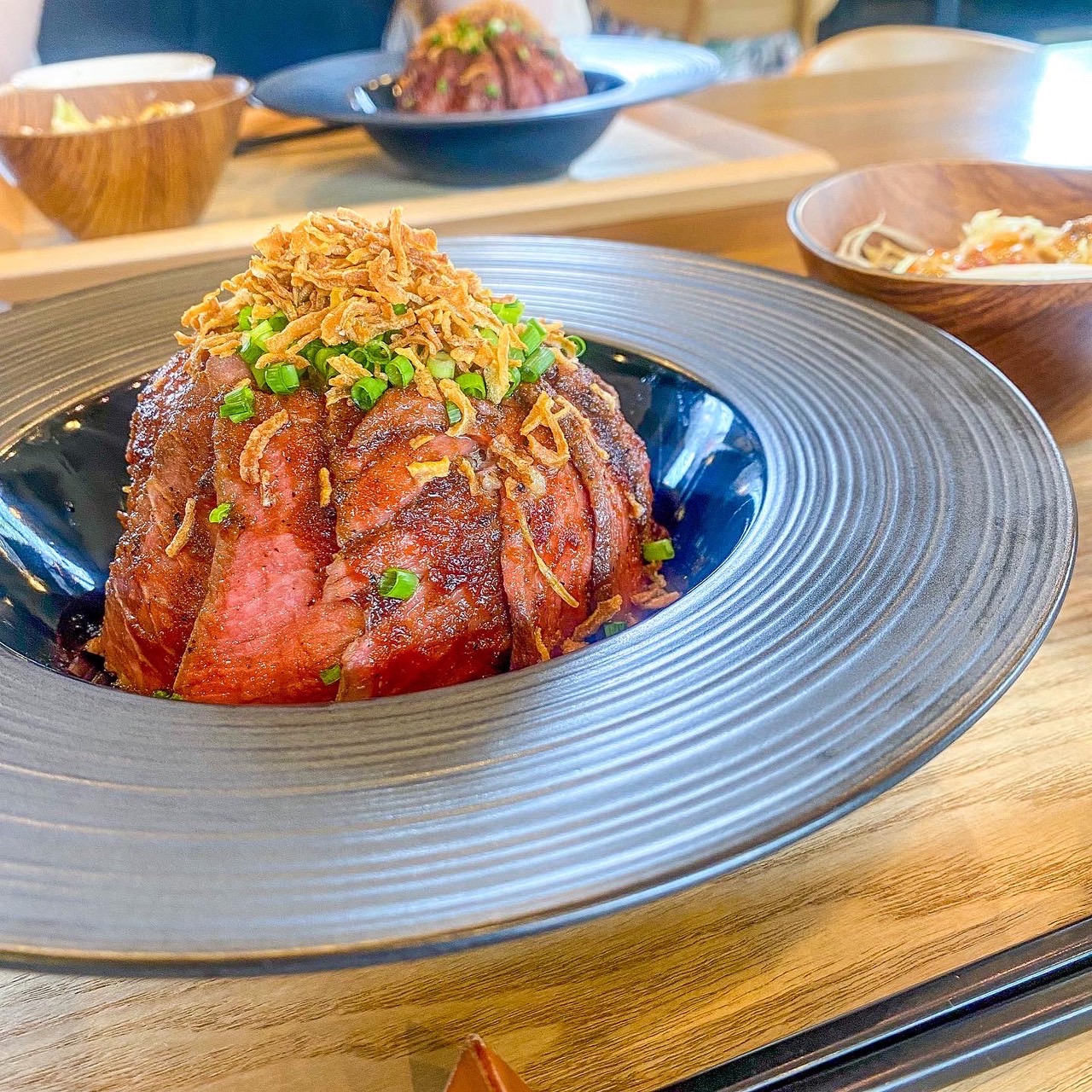 hanaen_yakinikuはな縁知立市レアステーキ丼愛知グルメ こぼれ落ちそうになるくらいの肉の量 オシャレで美味しくてかなり満足でした❤️。