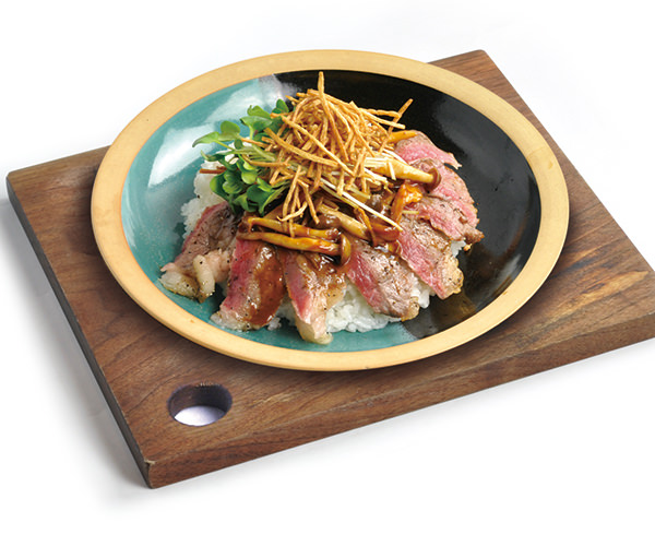 ジャポネソースのビーフステーキ丼。