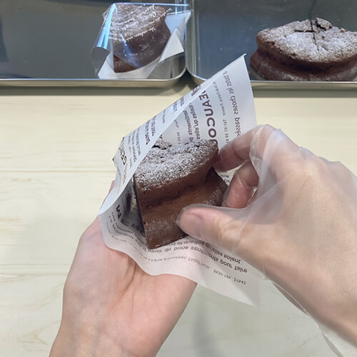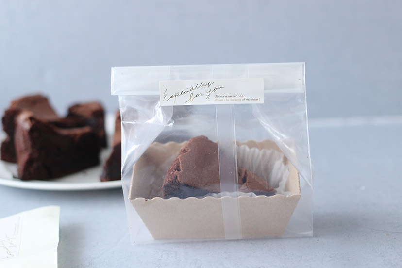 四角にカットした「ガトーショコラ」をラッピングする方法手作りラッピング。