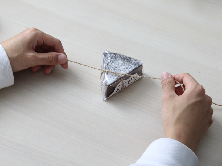 ガトーショコラ三角ケーキのラッピング方法とアレンジテクニック。