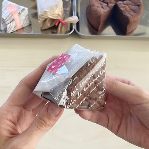 ガトーショコラのおしゃれラッピング!三角,四角のカット別包装。