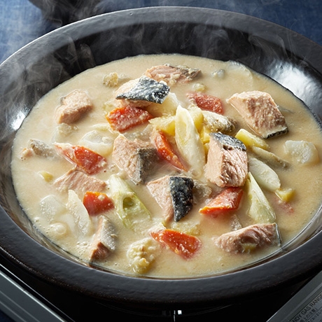 鮭と野菜たっぷりの牛乳入り石狩鍋うぇぶ.ひだまり。