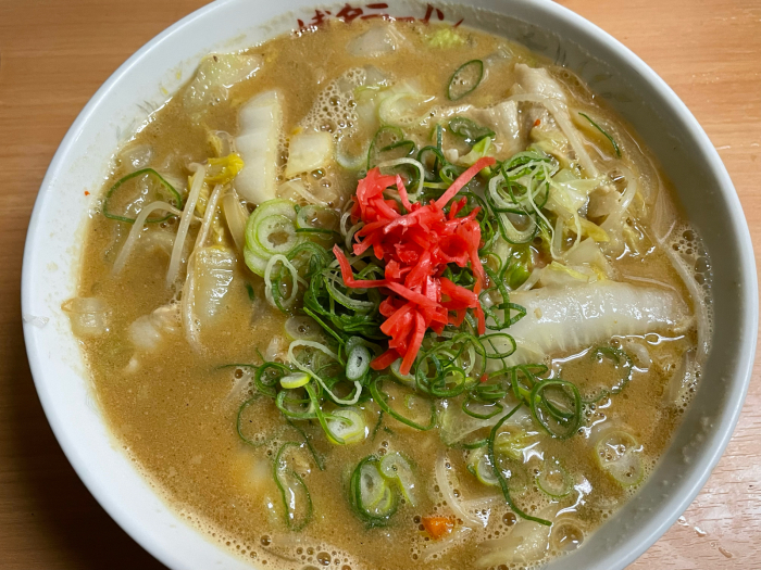 阪急石橋 阪大坂下の麺屋一得ガツ盛ラーメン!野菜大盛無料。