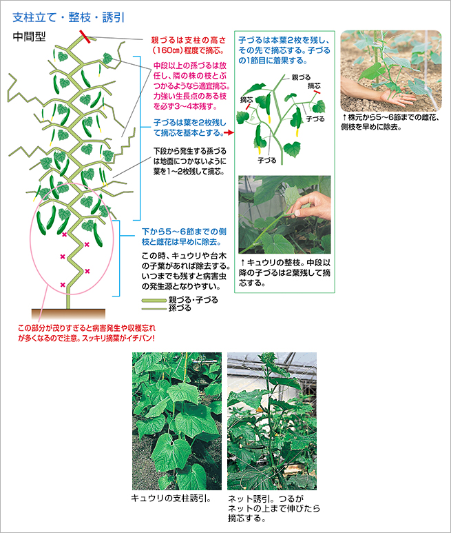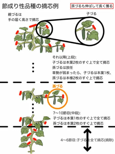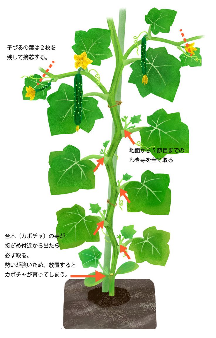 栽培のカギとなる!キュウリの摘心 摘芯 方法について農家web。