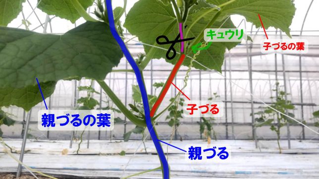 きゅうり 親づるの摘心方法とこれからの管理について子づるが伸びてこない原因。
