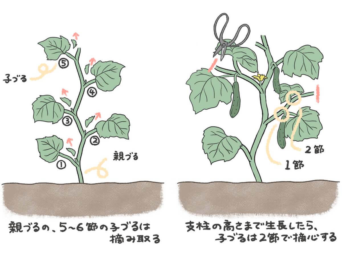 きゅうりの摘心の仕方わき芽はどこ?葉っぱの切り方を図解で解説🍀GreenSnap グリーンスナップ。