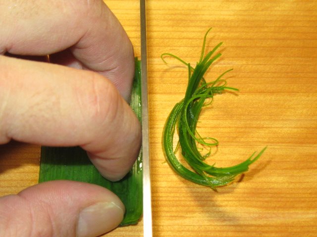 針ねぎの切り方手順 青ねぎを細く切る 野菜の飾り切り方法日本料理、会席・懐石案内所。
