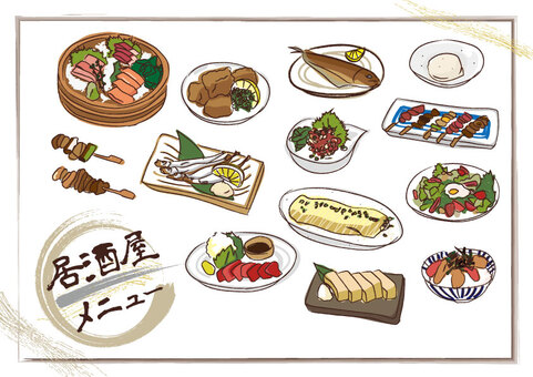 居酒屋メニュー 筆文字イラストセットイラスト。