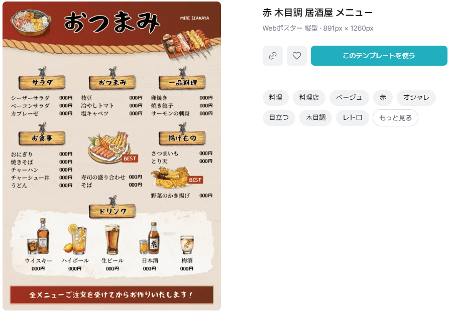 居酒屋メニュー無料テンプレートデザイン。イラストや画像付きも豊富 - Canva キャンバ。
