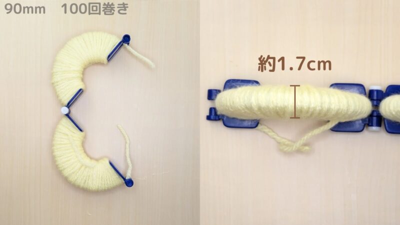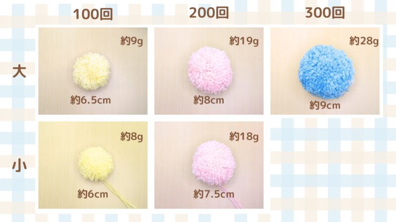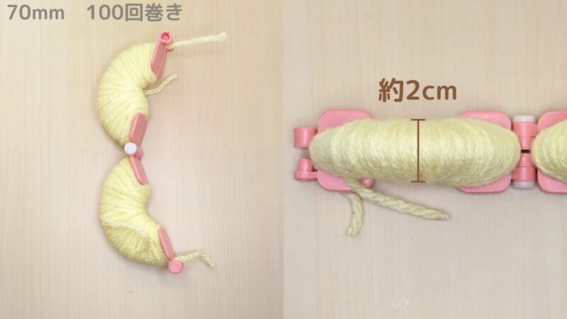ダイソーのポンポンメーカーで巻く回数変えてボリューム比較してみたダイソーポンポン作り方。