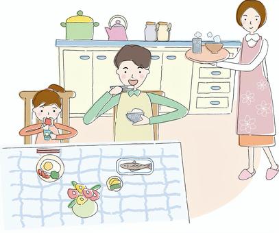 ファミリー キッチン家族のイラスト,インテリアのイラスト,食事風景のイラストSkillots。