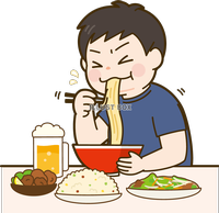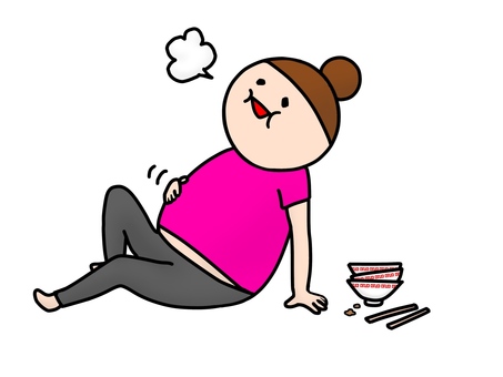 無料イラスト 食べ過ぎ・過食・肥満・デブ・太りすぎ・生活習慣病。