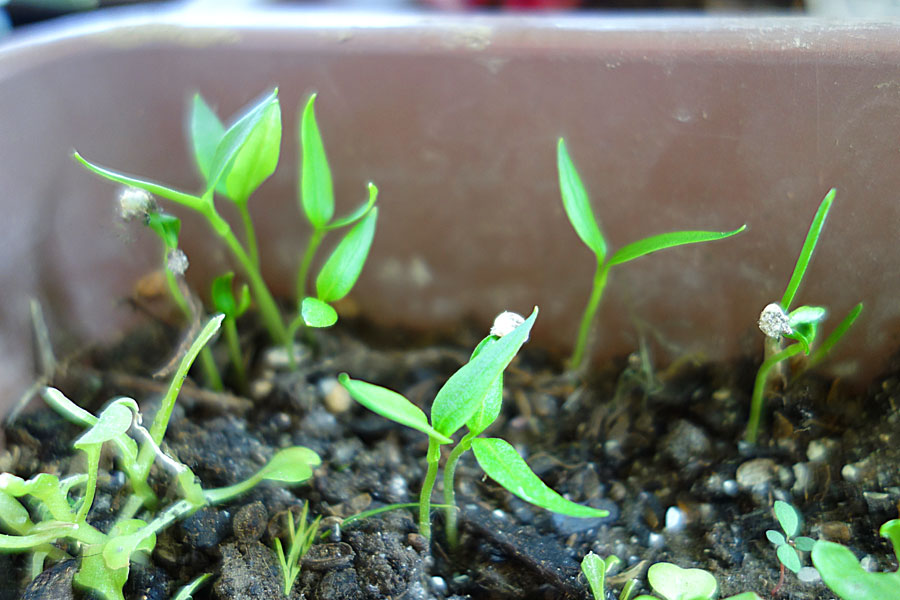 どでかピーマンの発芽確認 – 観葉植物とプランター野菜。旅先の植物も楽しむ Apprécier les plantes d'intérieur etla nature。