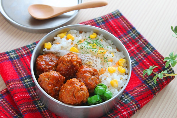 ミートボール丼のお弁当 作り方 定番のお弁当- レシピ 日本ハム。