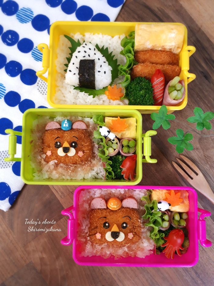 にっこりしあわせお弁当♪白身魚タルタルソースがライオンに変身♪。
