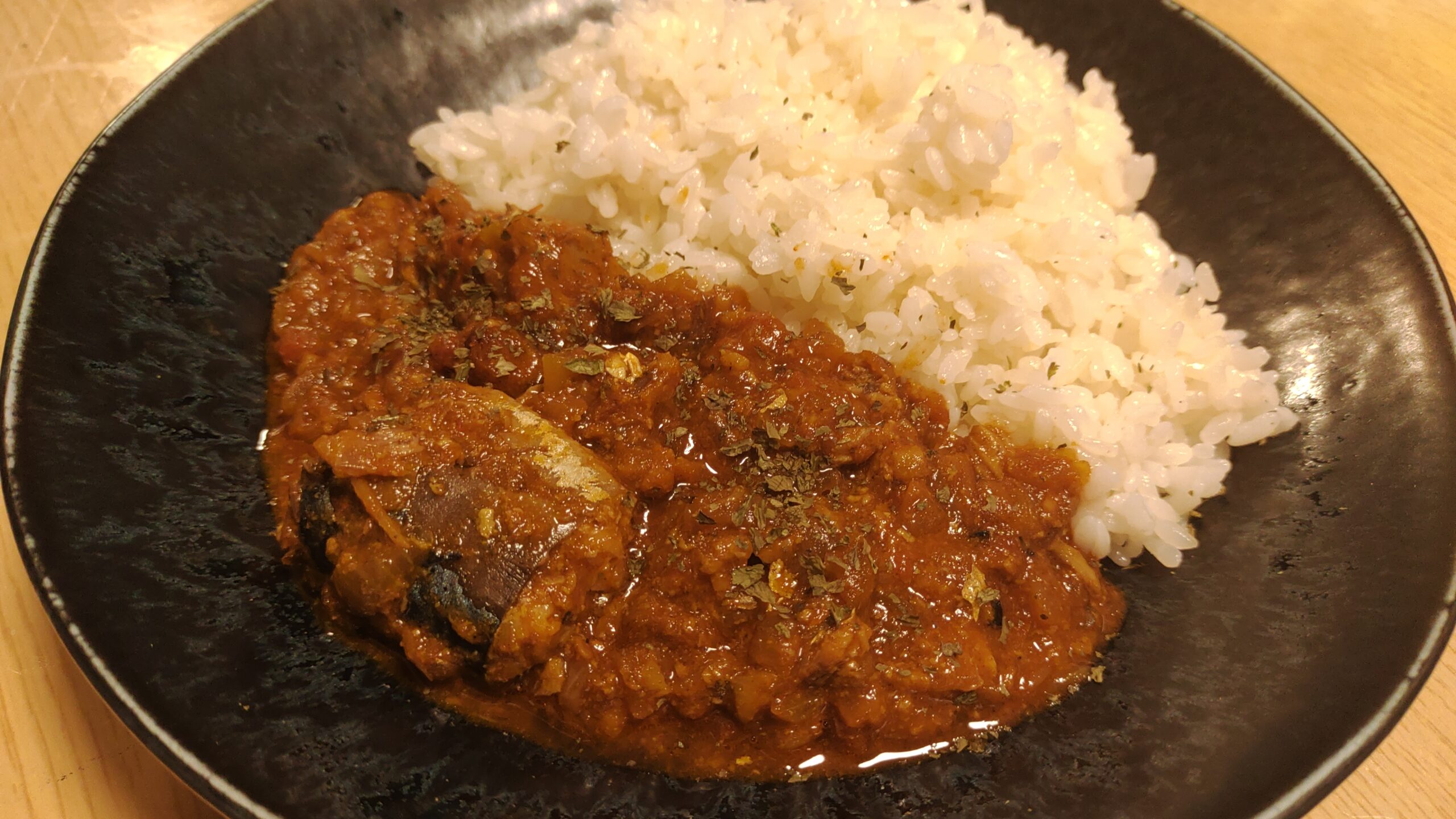 さば缶となすのスパイスカレーきょうも家呑み 多国籍ご飯。