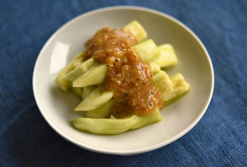 レンジ蒸しなすのみそがけ:白ごはん.com。