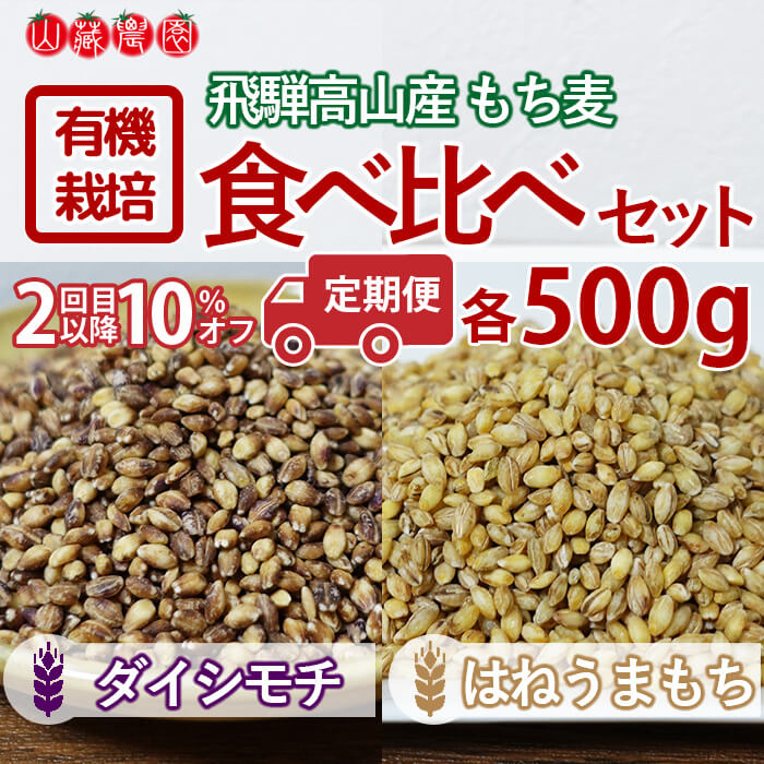定期便 有機栽培もち麦 食べ比べセット500g ダイシモチ はねうまもち飛騨高山 山藏農園。