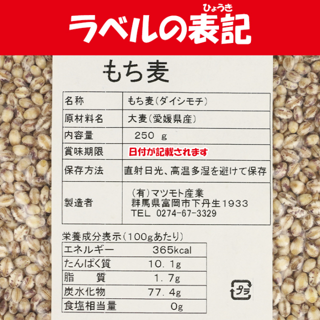 国産 もち麦 250g マツモト産業 群馬県富岡市送料別NS。